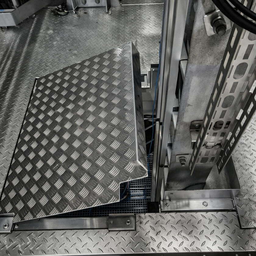 By enabling operators to open the hatch without using their hands, the Hatch System significantly reduces risk during vertical movement, offering safer access than traditional pulley-and-weight systems. Its self-closing feature eliminates uncontrolled slamming, further improving safety.